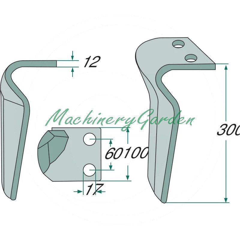 Púa de grada rotativa derecha 300 mm Maschio